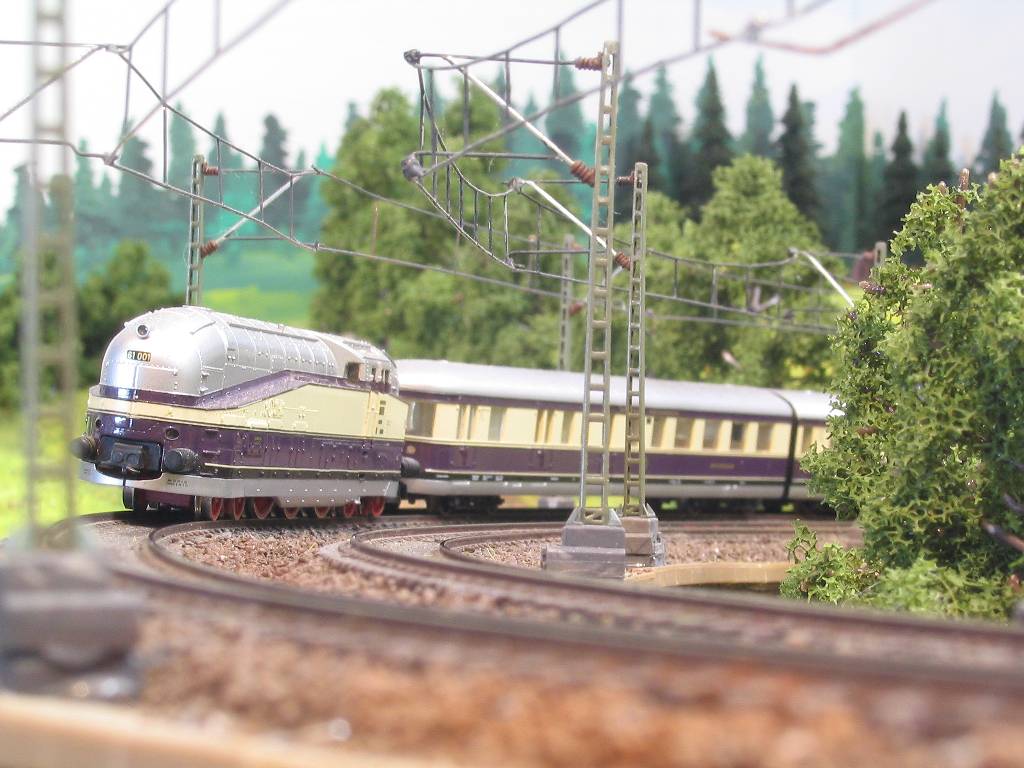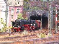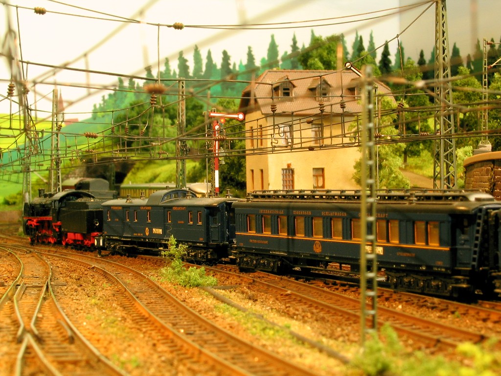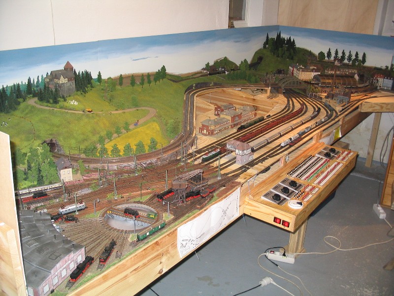 Alles spielt sich rein analog auf 3,8m x 1,25m ab. Dargestellt ist die Epoche II, die Reichsbahn zu ihrer Glanzzeit ....