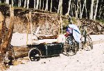 Because the is no access to the beach by car, I have to put the ship on my bikes trailer and carry it 5 km through the forrest. |